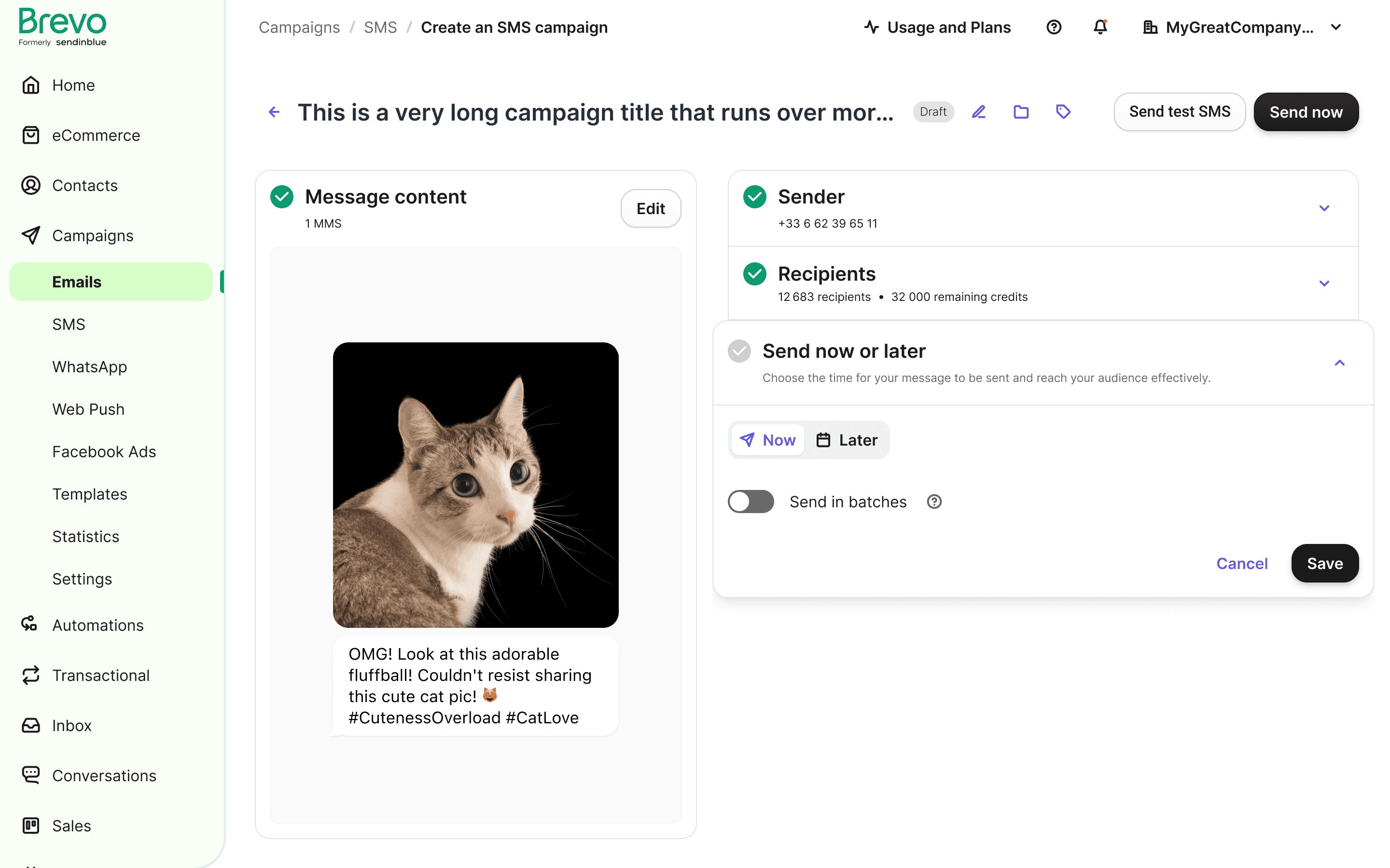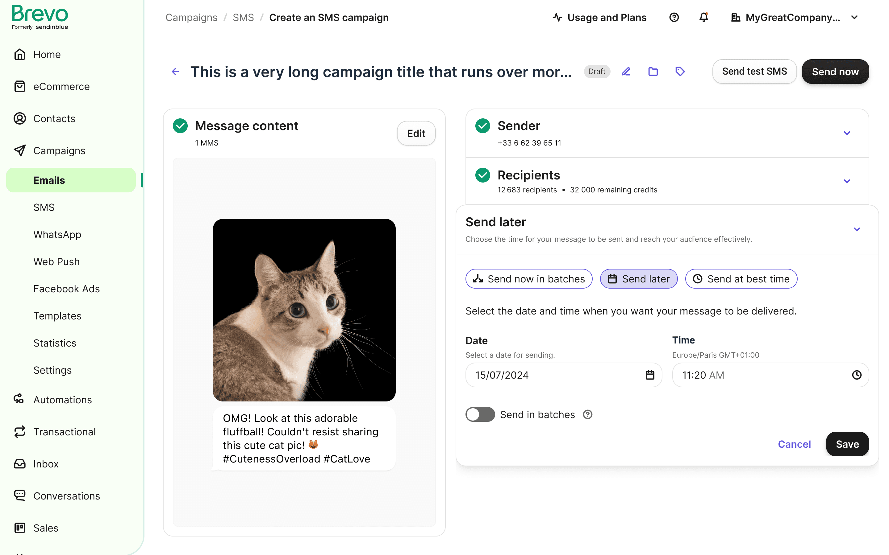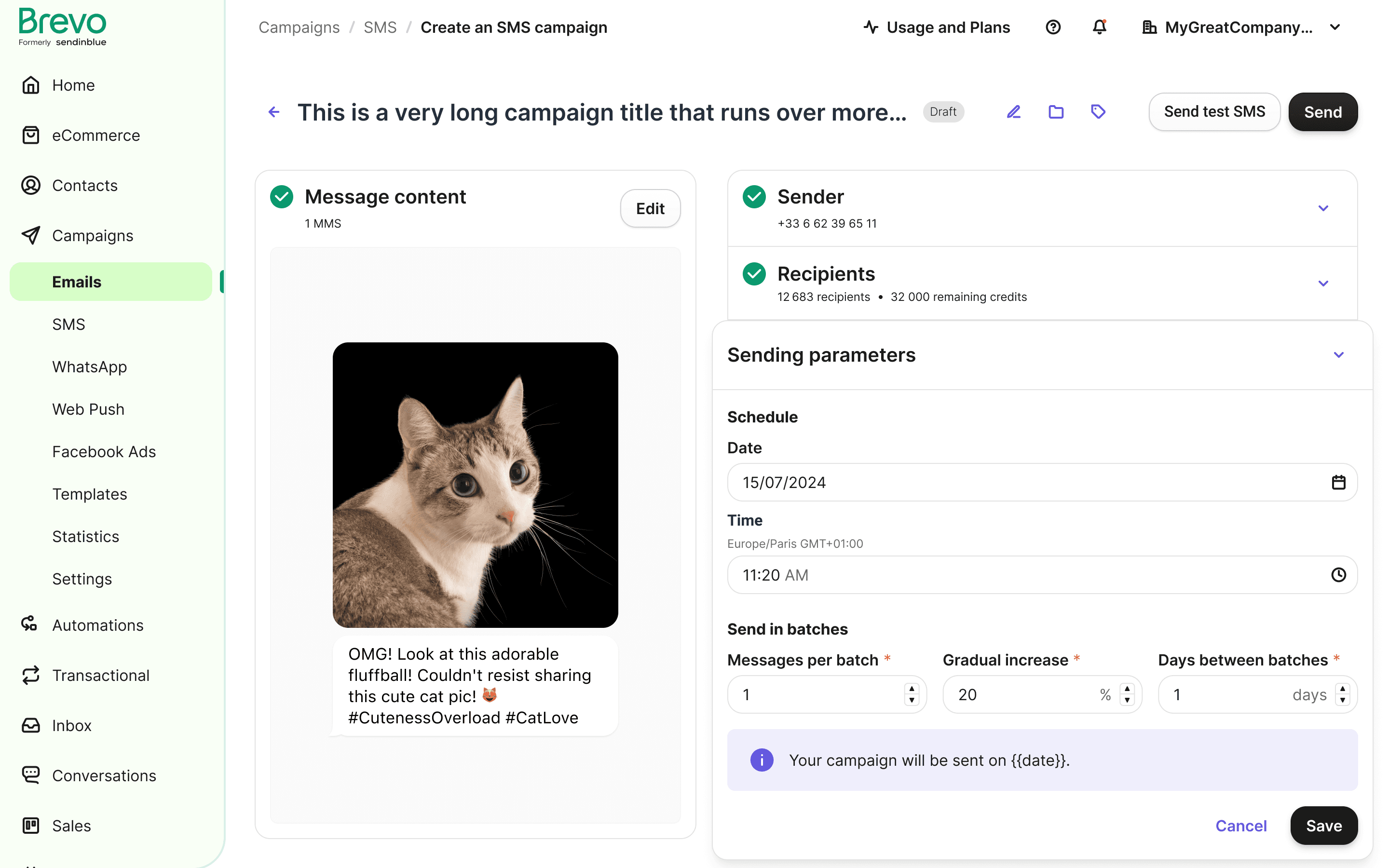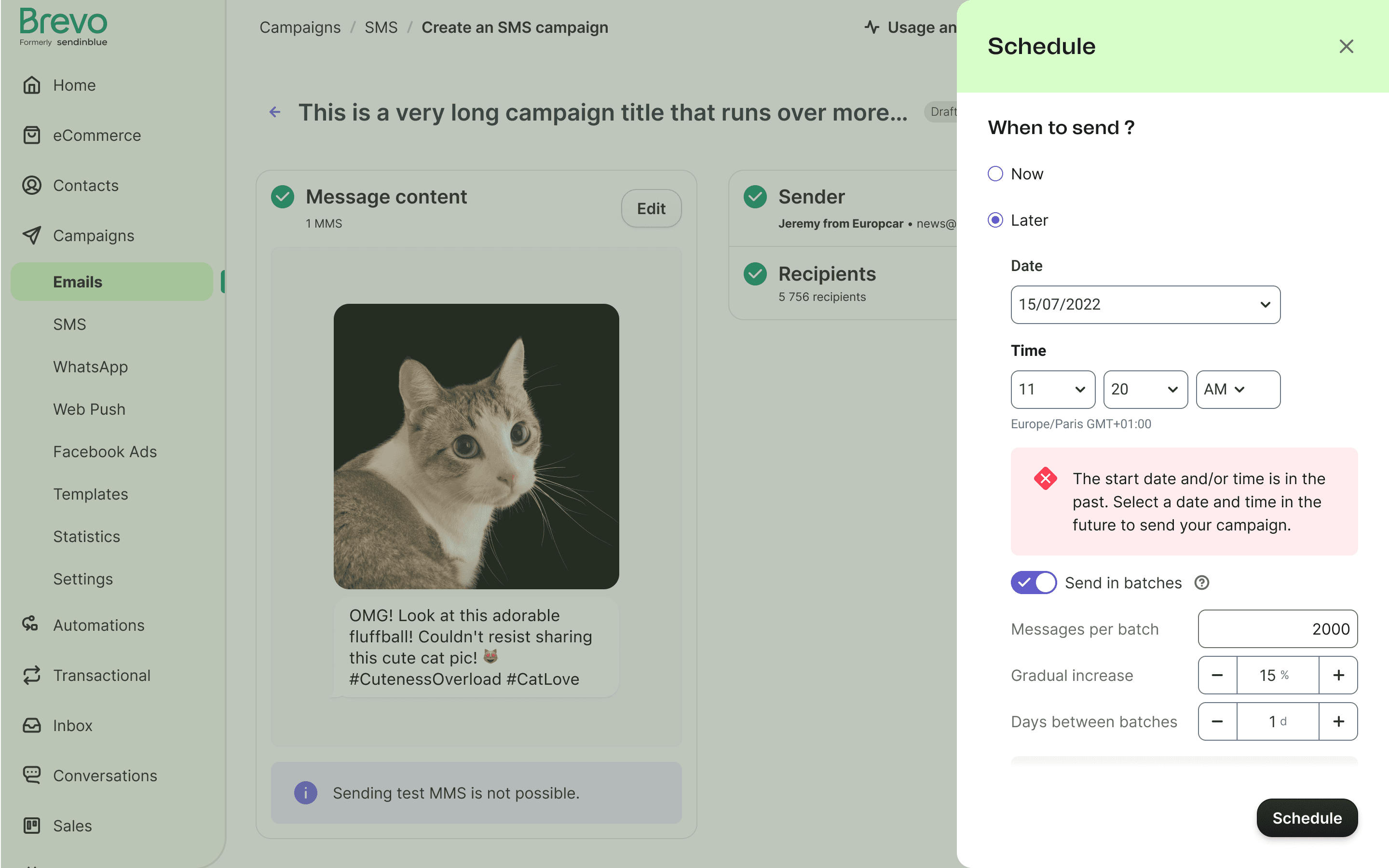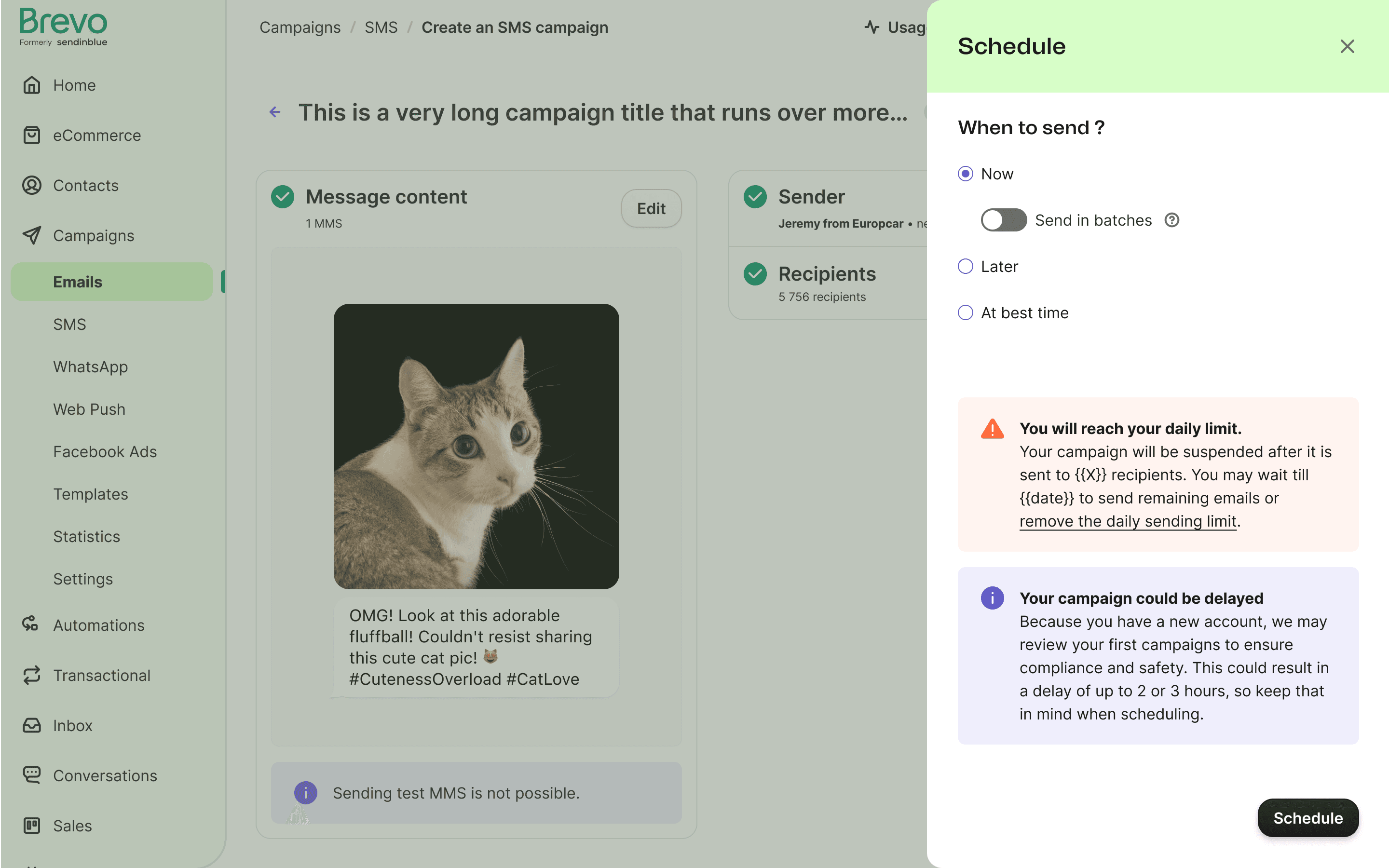 When a campaign is scheduled, there is insufficient information regarding the time and date, and lack of editing options.