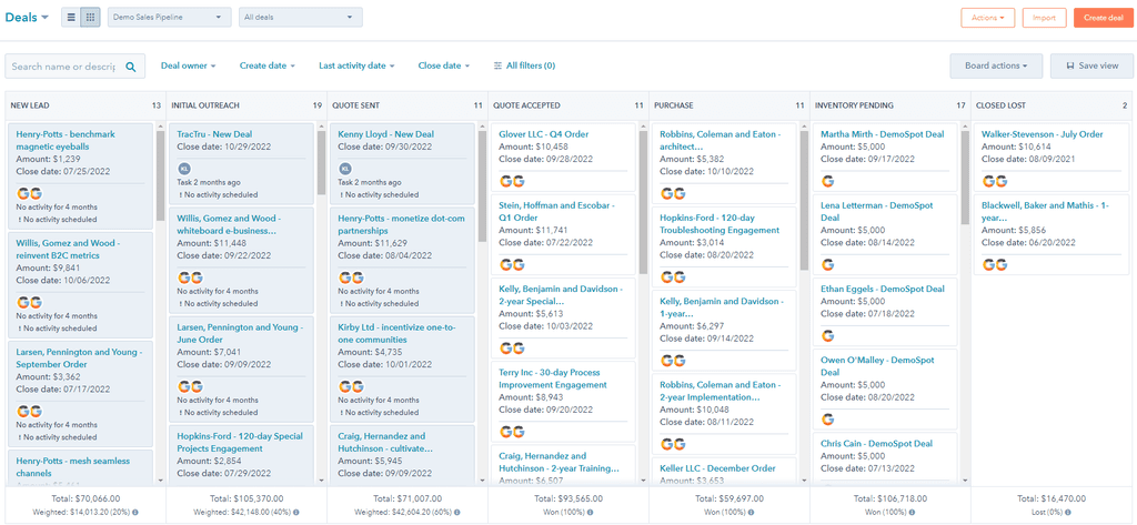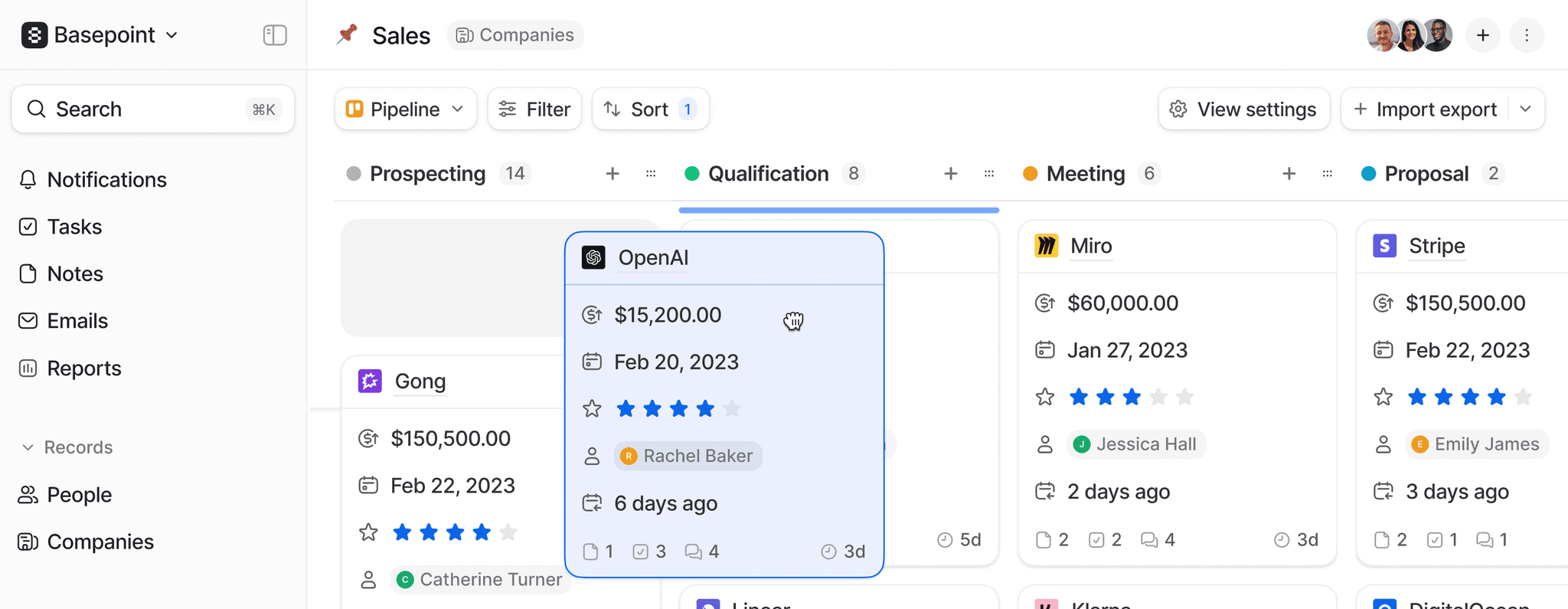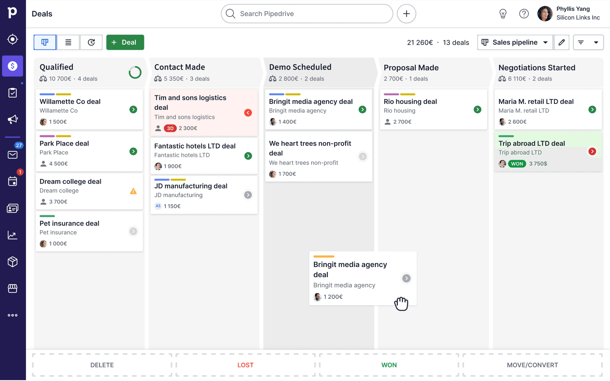 A Kanban view provides a clear overview and allows for quick movement of cards between different steps.